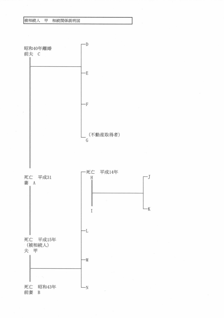 上記の相続関係説明図のとおりの相続関係が生じており,被続人甲の不動産をGの単独所有とする予定であるとのご相談をお受けいたしました。この場合,2通りの手続きの方法が考えられます。